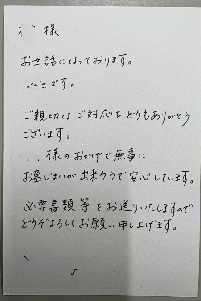 遠方から進める場合は、書類の内容や流れが分かりにくく、不安を感じやすい部分です。